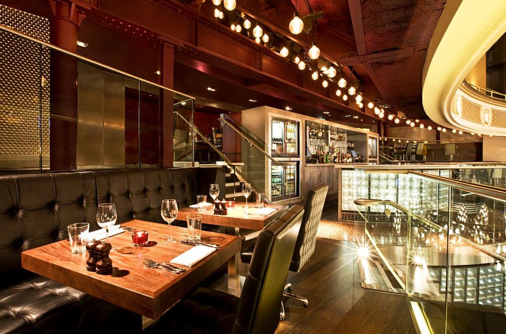 A fashionable destination for American beers and cooling concoctions, the Heliot bar is a curved, glowing spectacle in the restaurant's centre. Renowned mixologist Tony Cogliaro brings innovative cocktail mixes to this famous London setting.